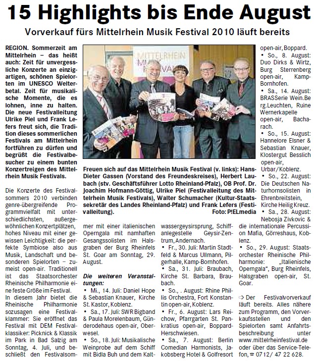 Mittelrhein Musik Festival: 15 Highlights bis Augustende 2010
