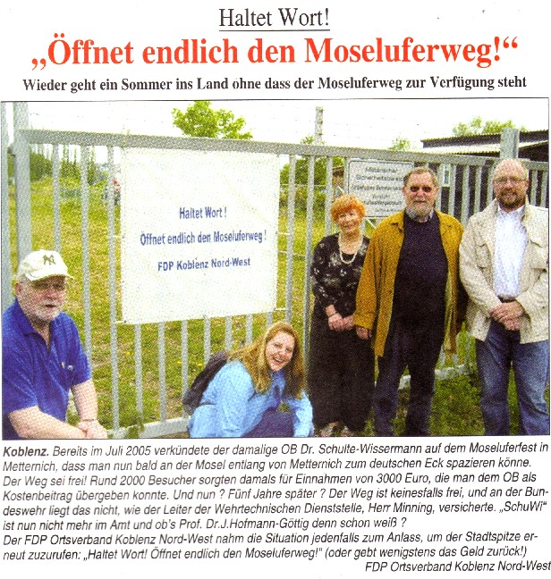 Moseluferweg soll geöffnet werden …