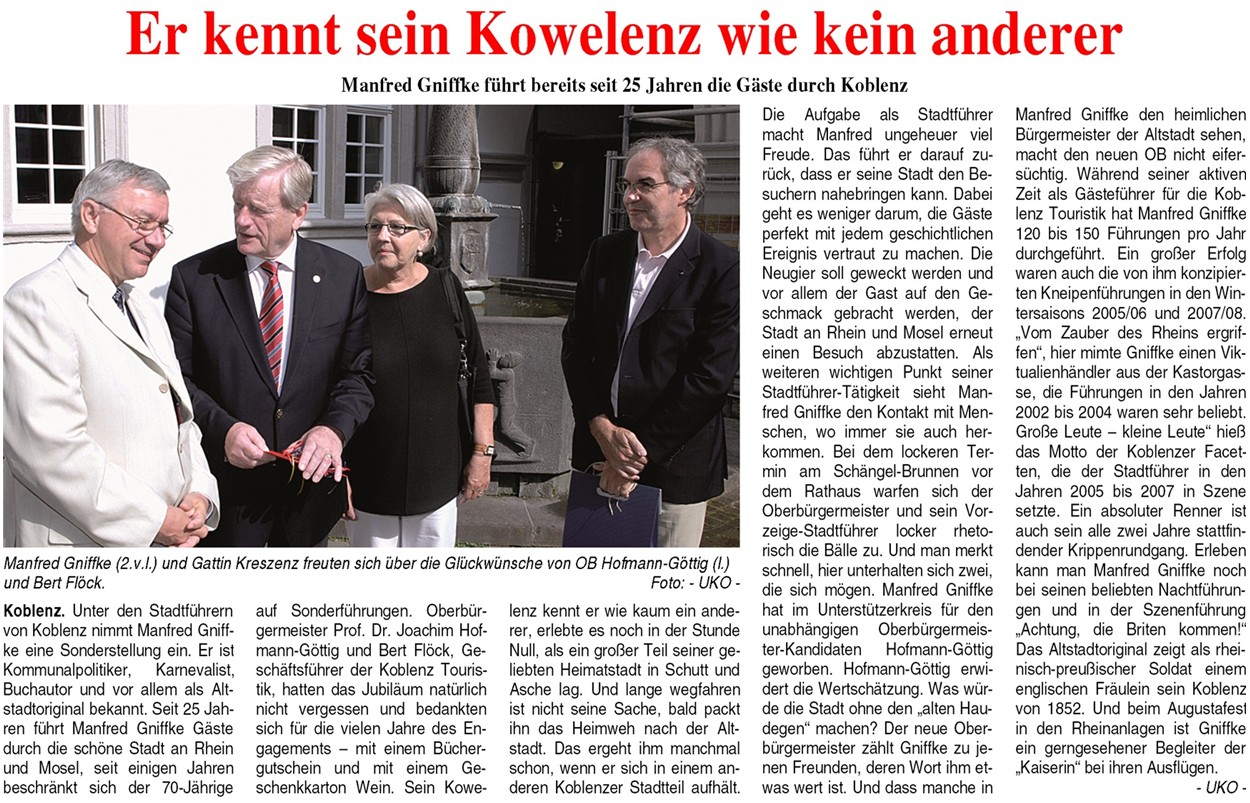 Manfred Gniffke ist seit 25 Jahren Koblenzer Stadtführer