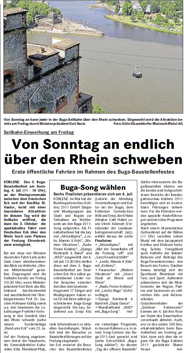 Koblenzer BuGa-Seilbahn: Einweihung am Freitag 02.07.2010