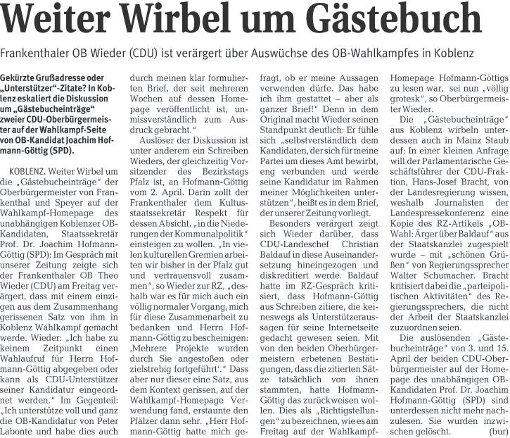 “Weiter Wirbel um Gästebuch”