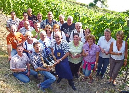 “Weinübergabe an Ehrenwinzer Dr. Eberhard Schulte-Wissermann der Winzer der “Aufbaugemeinschaft Moselweiß”