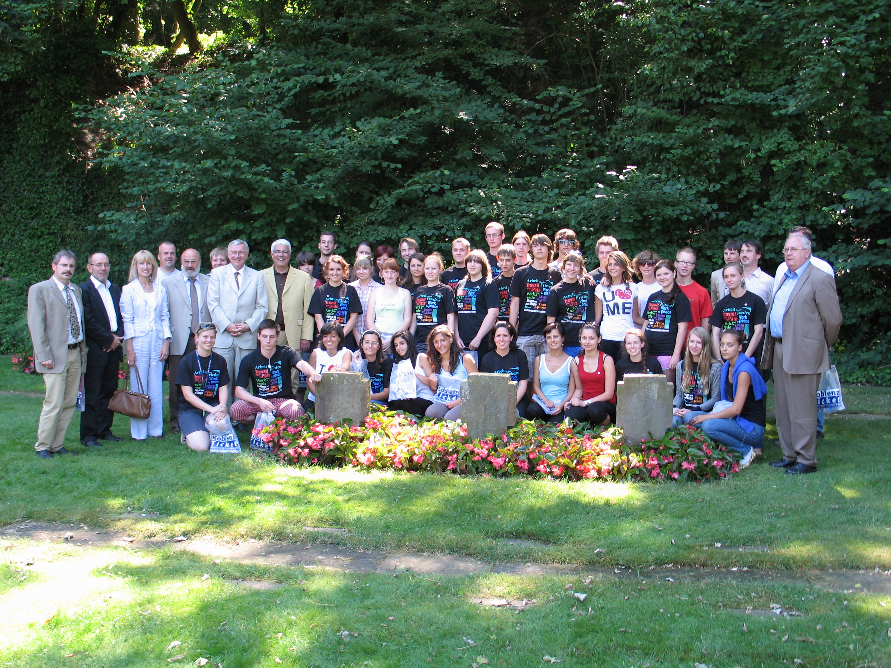 ” Der Präsident der Aufsichts- und Dienstleistungsdirektion, Dr. Josef Peter Mertes, hat gemeinsam mit Oberbürgermeister Prof. Dr. Joachim Hofmann-Göttig und dem Landesvorsitzenden des Volksbundes Deutsche Kriegsgräberfürsorge (VDK), Michael Hörter, das VDK-Jugendlager in Koblenz besucht. Auf dem Koblenzer Hauptfriedhof pflegen 34 Jugendliche aus acht Nationen in der Zeit vom 12.07. bis zum 27.07.2010 die Kriegsgräber. Sie kommen aus Belgien, Italien, Moldavien, Polen, Russland, Ungarn, Weißrussland und Deutschland.
