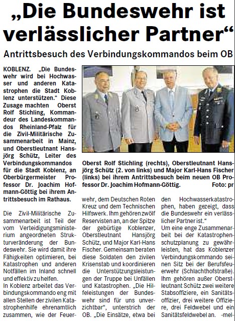 Antrittsbesuch des Verbindungskommandos beim Koblenzer OB Hofmann-Göttig
