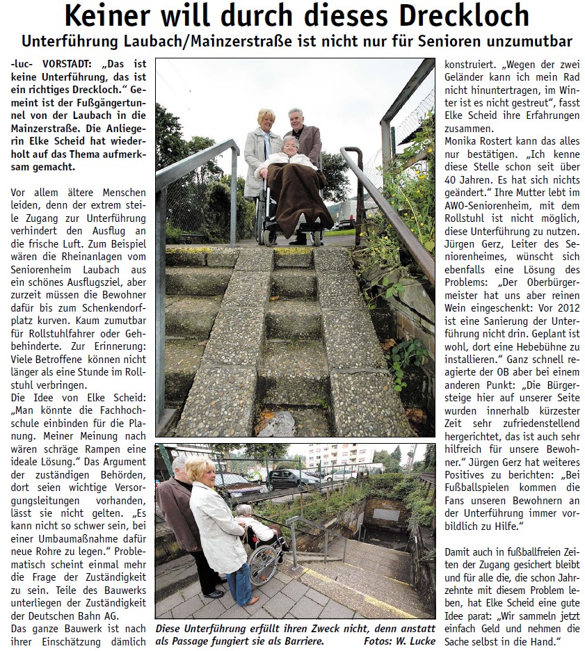 Koblenzer Unterführung Laubach/Mainzerstraße: Vor 2012 keine Verbesserung