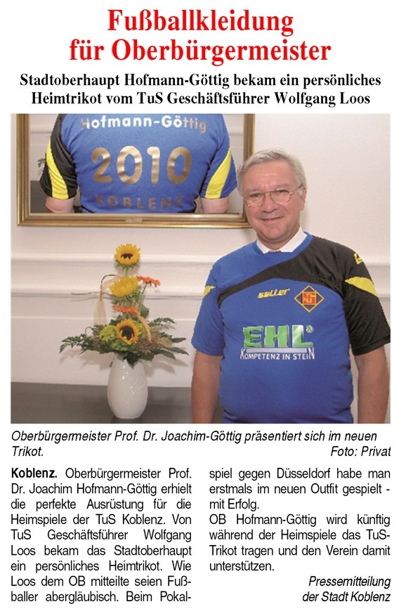 Koblenzer Stadtchef bekam eigenes TuS-Koblenz Trikot
