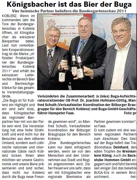 Ein Partner der Koblenzer BuGa ist das Königsbacher Bier