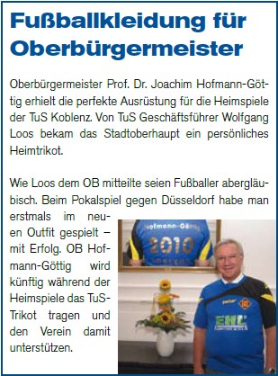 Koblenzer OB Hofmann-Göttig mit TuS-Trikot beschenkt