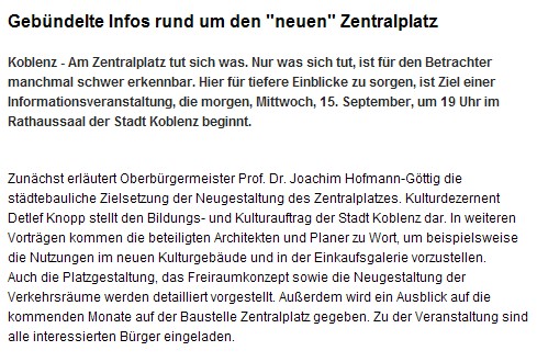 15.09.2010: Koblenzer OB Hofmann-Göttig informiert die Öffentlichkeit rund um den Zentralplatz
