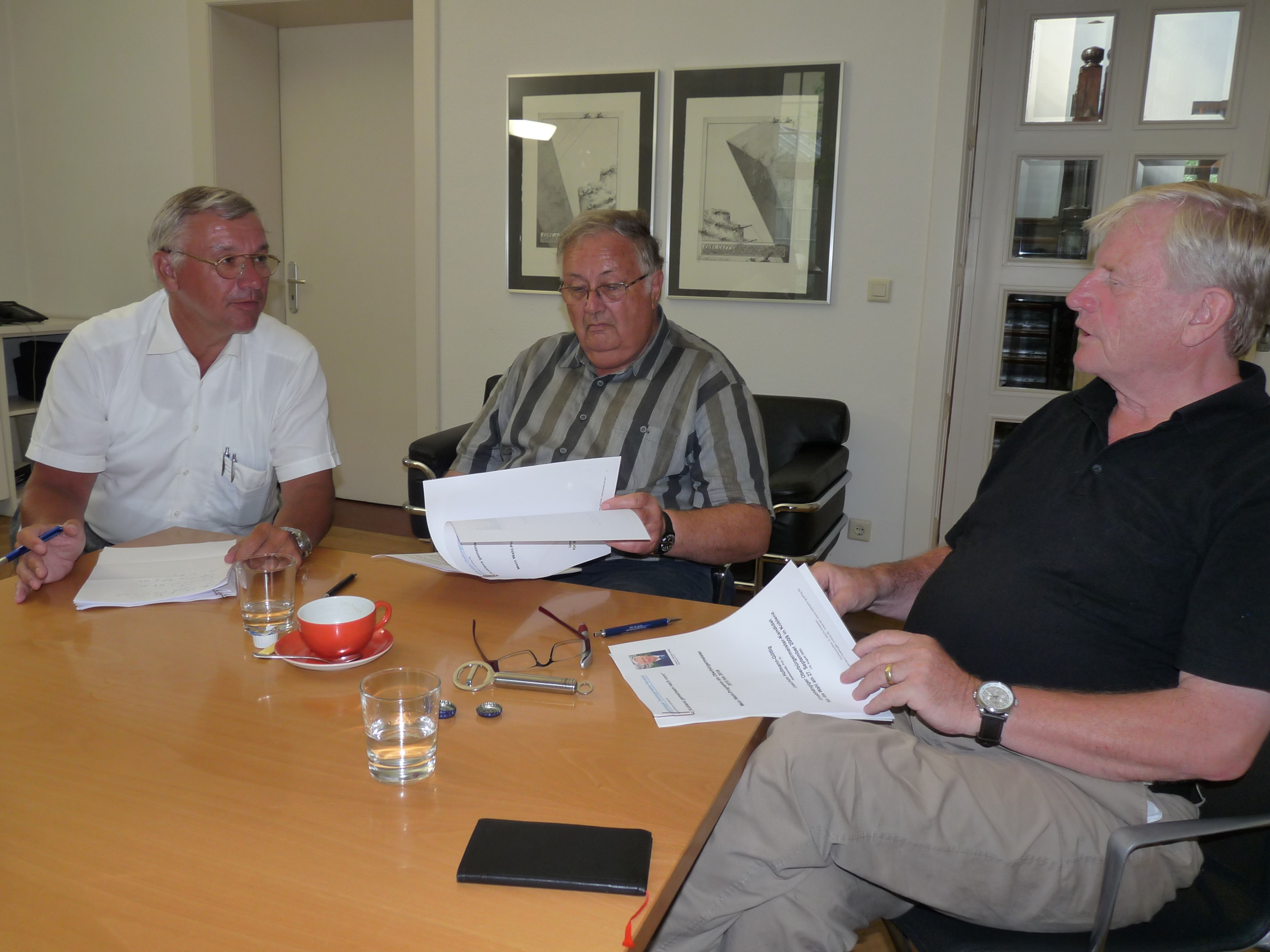 16:00 Am Sitz der mich unterstützenden Wählerinitiative in der Rechtsanwaltskanzlei Eckhard Kunz treffe ich mich mit einigen Unterstützern, darunter Karl-Jürgen Wilbert (dem ehemaligen Hauptgeschäftsführer der HWK Koblenz und Vorsitzenden der CDU-Fraktion im Gemeinderat Lehmen) und Manfred Gniffke (Vorsitzender der Freien Bürgergruppe Koblenz). Im Mittelpunkt steht die Vorbereitung der anstehenden Termine.