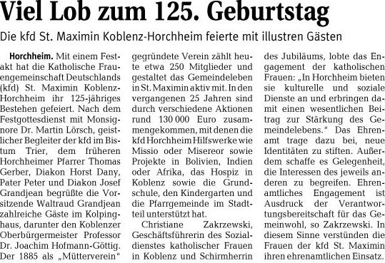 125 Jahre Katholische Frauengemeinschaft Deutschlands St. Maximin in Koblenz-Horch-heim