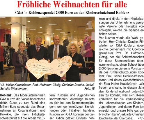 Spende von C&A an den Koblenzer Kinderschutzbund