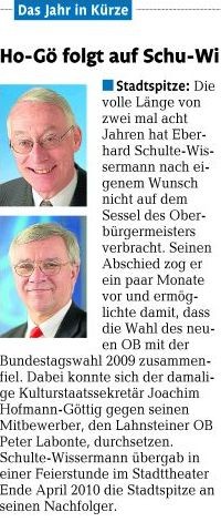 (1) Das Jahr 2010 in Kürze: Hofmann-Göttig folgt Schulte-Wissermann im Amt des Koblenzer OB