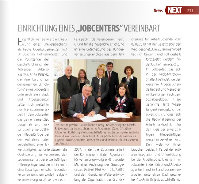 Chefin der Arbeitsagentur Baljevic und OB Hofmann-Göttig vereinbarten Koblenzer “Jobcenter”
