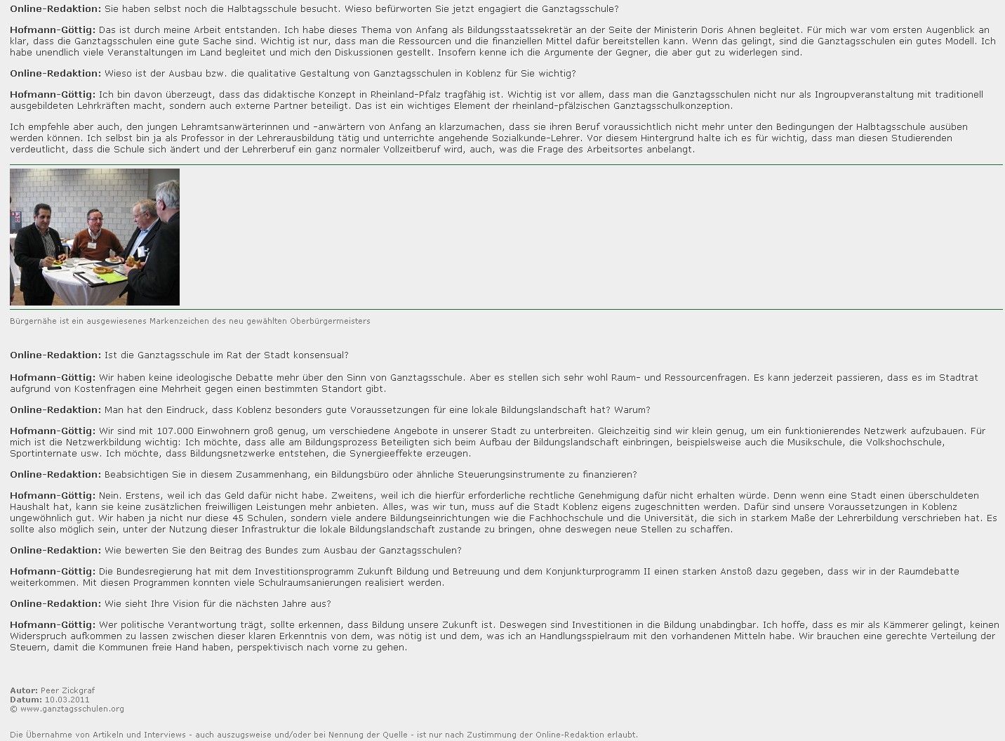 Interview der Online Redaktion des Bundesministeriums für Bildung und Forschung mit dem Koblenzer OB Hofmann-Göttig, 10.03.2011