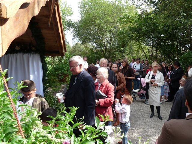 Hofmann-Göttig spendet ein Kerze bei der Sinti-Wallfahrt in Lützel
