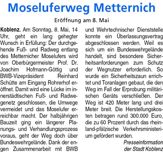 08.05.2011: Koblenzer Moseluferweg wieder nach 20 Jahren für Öffentlichkeit frei