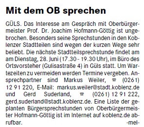28.06.2011: Stadtteil-Bürgersprechstunde von OB Hofmann-Göttig im Stadtteil Koblenz-Güls