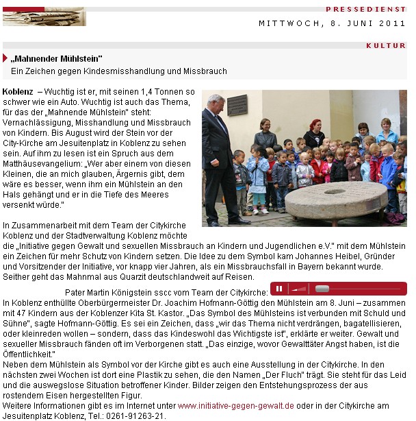 Posted in Interviews/Gespräche JoHo, Medien/Presse zu JoHo by joho Keine KommentarePressedienst Bistrum Trier.de, Bischöfliche Pressestelle, 08.06.2011