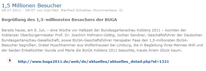 BuGa Koblenz 2011 hat 1,5 Millionsten Gast