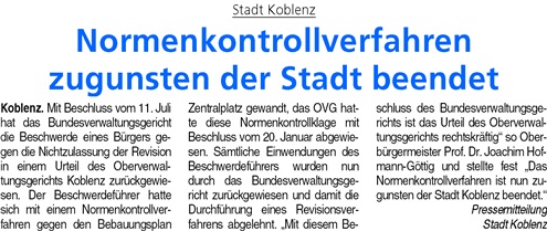 Normenkontrollverfahren: Koblenzer Zentralplatzbau rechtens