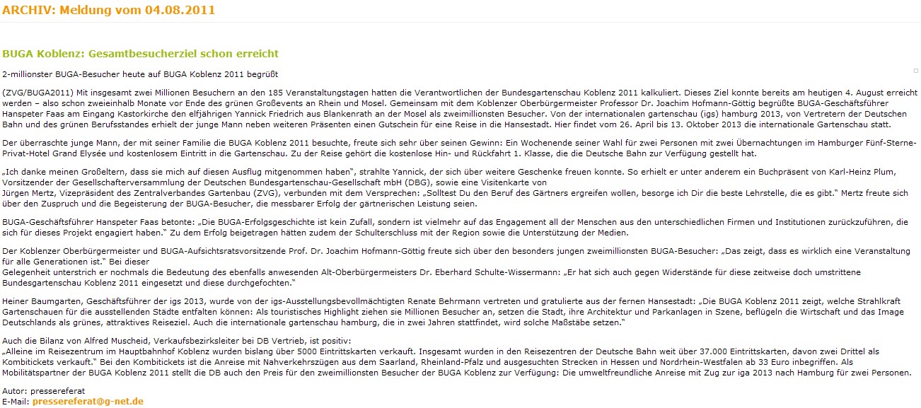 Posted in Interviews/Gespräche JoHo, Medien/Presse zu JoHo by joho Keine KommentareAuszug : Wortlaut “Meldung” des Zentralverbands Gartenbau e.V. (ZVG), 04.08.2011