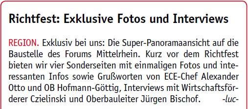 (1) 14.09.2011: Richtfest des Koblenzer Forums Mittelrhein (Zentralplatz)