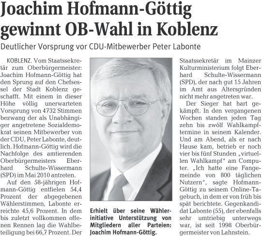 Deutlicher Vorsprung Hofmann-Göttigs vor OB-Mitbewerber