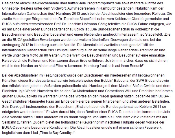 Emotionale Buga-Abschlussfeier in Koblenz