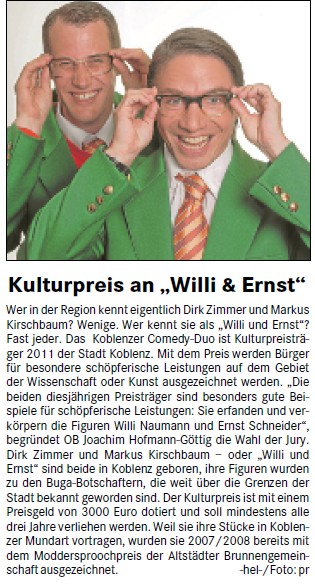 “Willi und Ernst” erhalten Koblenzer Kulturpreis 2011