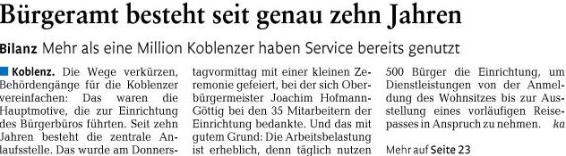 10 Jahre Bürgeramt in Koblenz – Mehr als eine Million Nutzungen des Service