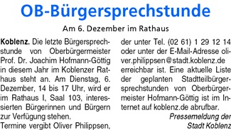 06.12.2011: Letzte Rathaus-Bürgersprechstunde für 2011 von OB Hofmann-Göttig