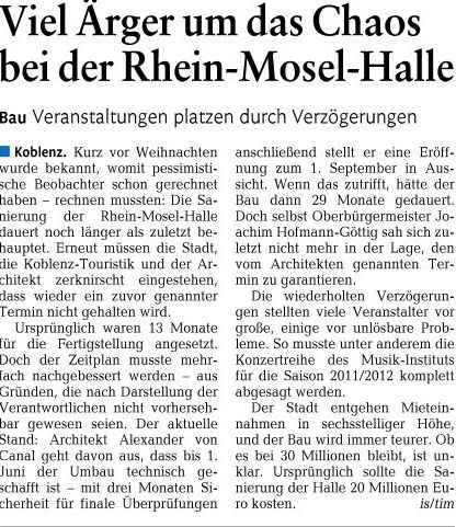 Zur Verzögerung bei der Koblenzer Rhein-Mosel-Halle
