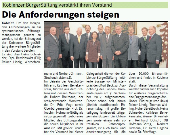 Koblenzer BürgerStiftung erweitert Vorstand