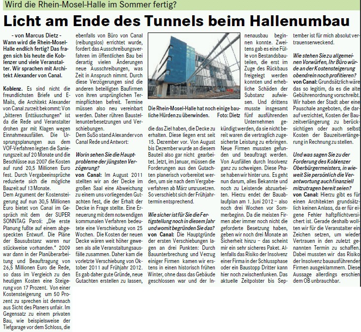 Zur Bauverzögerung bei Koblenzer Rhein-Mosel-Halle
