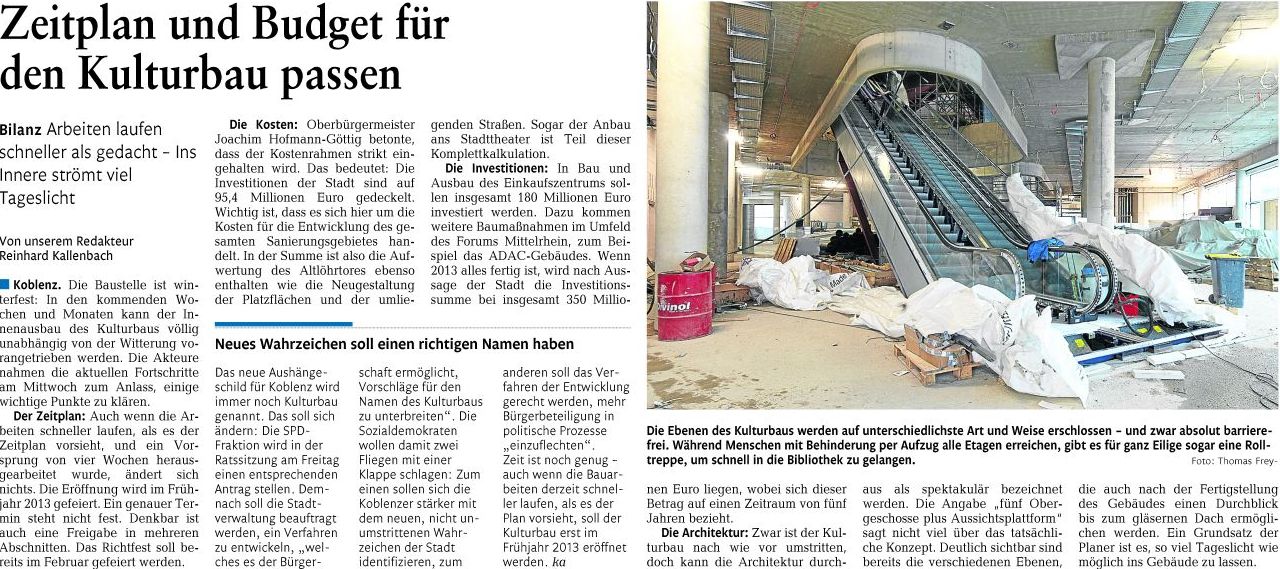 Zum Koblenzer Kulturbau/Zentralplatz: Zeitplan und Budget passen …