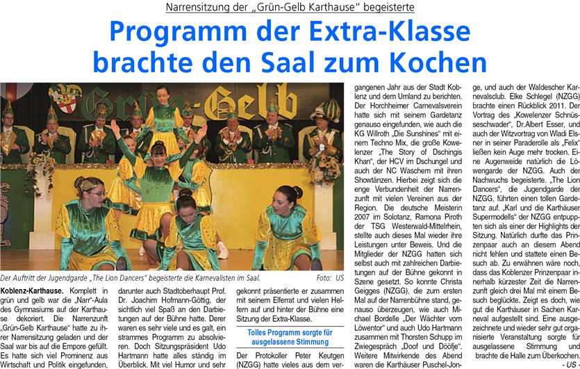 Koblenzer Narrensitzung “Grün-Gelb Karthause” mit begeisterndem Programm