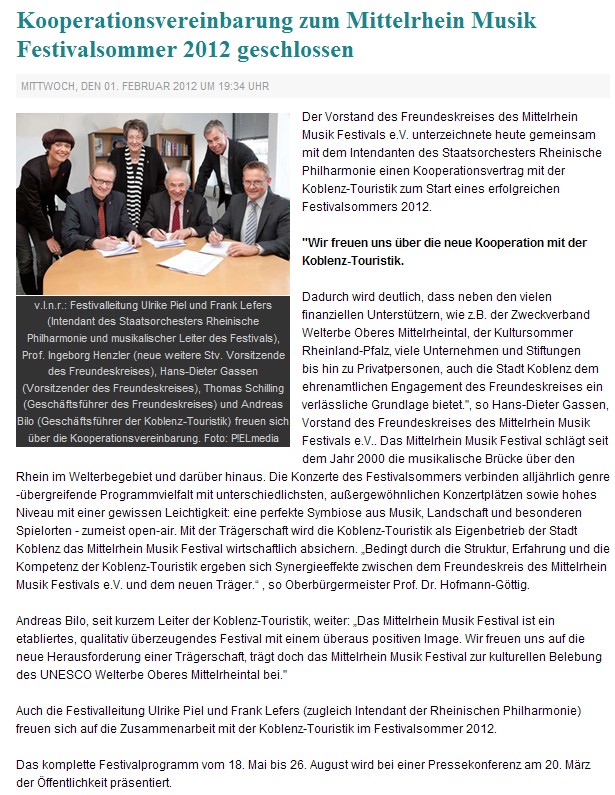Zum Mittelrhein Musikfestivalsommer 2012 Kooperationsvereinbarung geschlossen
