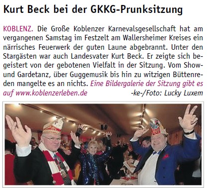 Ministerpräsident Beck besuchte Sitzung der Großen Koblenzer Karnevalsgesellschaft (GKKG)