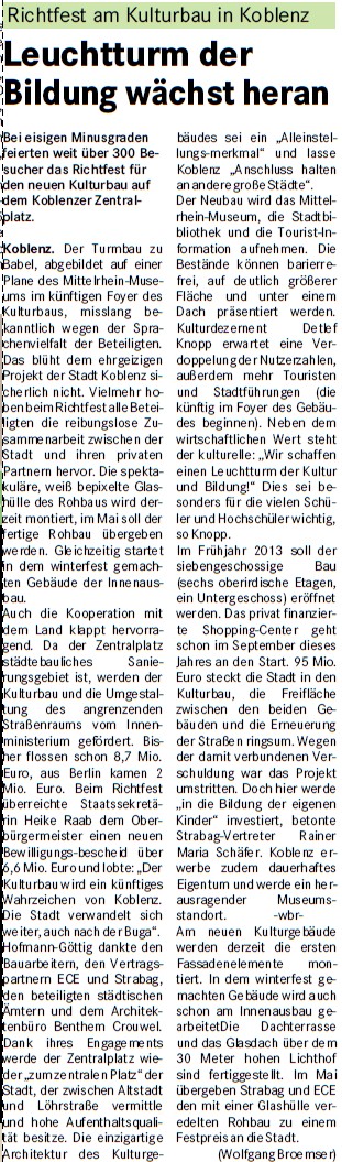 Richtfest am Koblenzer Kulturbau/Zentralplatz