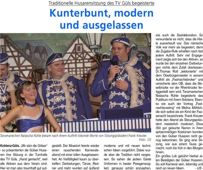 Koblenzer Karneval: Husarensitzung des TV-Güls – Auch OB Hofmann-Göttig “wird nicht verschont”