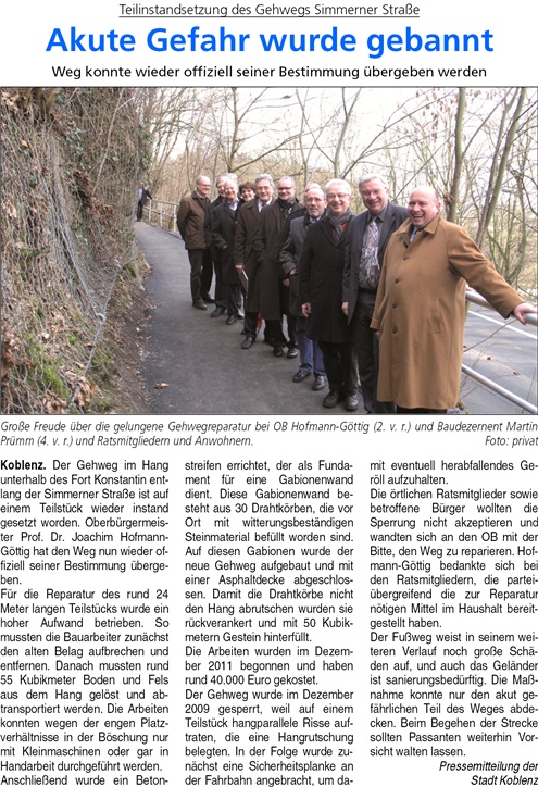 Koblenzer Simmerner Straße ihrer Bestim-mung übergeben: Gefahrenabwehr gelungen