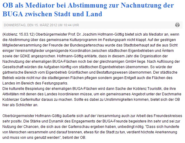 Zur Nachnutzung der Koblenzer BuGa: OB Hofmann-Göttig als Mediator zwischen Stadt und Land
