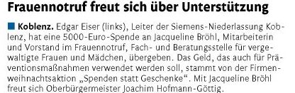 Koblenzer Frauennotruf erhält Siemens-Spende