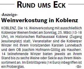 25.03.2012: Weinprobe von Koblenzer Winzern im Rathaus
