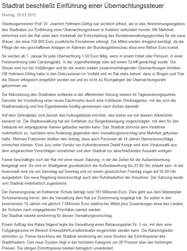 Quelle Link: http://www.koblenzerleben.de/koblenz/stadtrat-beschliesst-einfuehrung-einer-uebernachtungssteuer