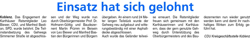Simmerner Straße in Koblenz wieder begehbar