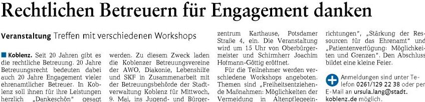 “Dankeschön” den rechtlichen Betreuern in Koblenz für ihr Engagement