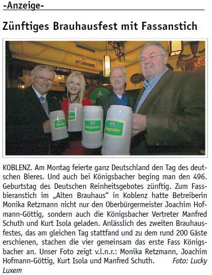 Zum Zweiten Koblenzer Braufest: Zapfan-stich