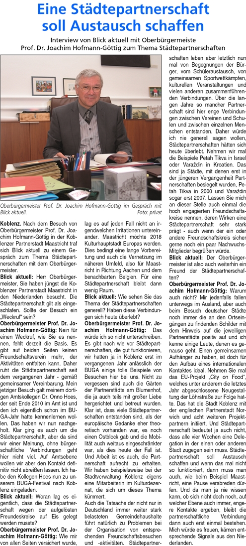Zu Koblenzer Städtepartnerschaften: Interview mit OB Hofmann-Göttig